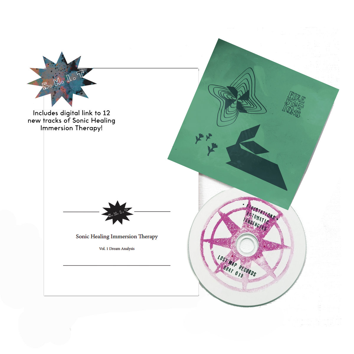 Limited edition hand-stamped CD-R in card wallet with cover art by Laura Copsey, and a "Sonic Healing Immersion Therapy (S.H.I.T.) - Dream Analysis Vol 1" zine containing drawings, submitted by kind listeners, of images from their dreams. Also, a link to stream/download S.H.I.T. collective sonic improvisations.