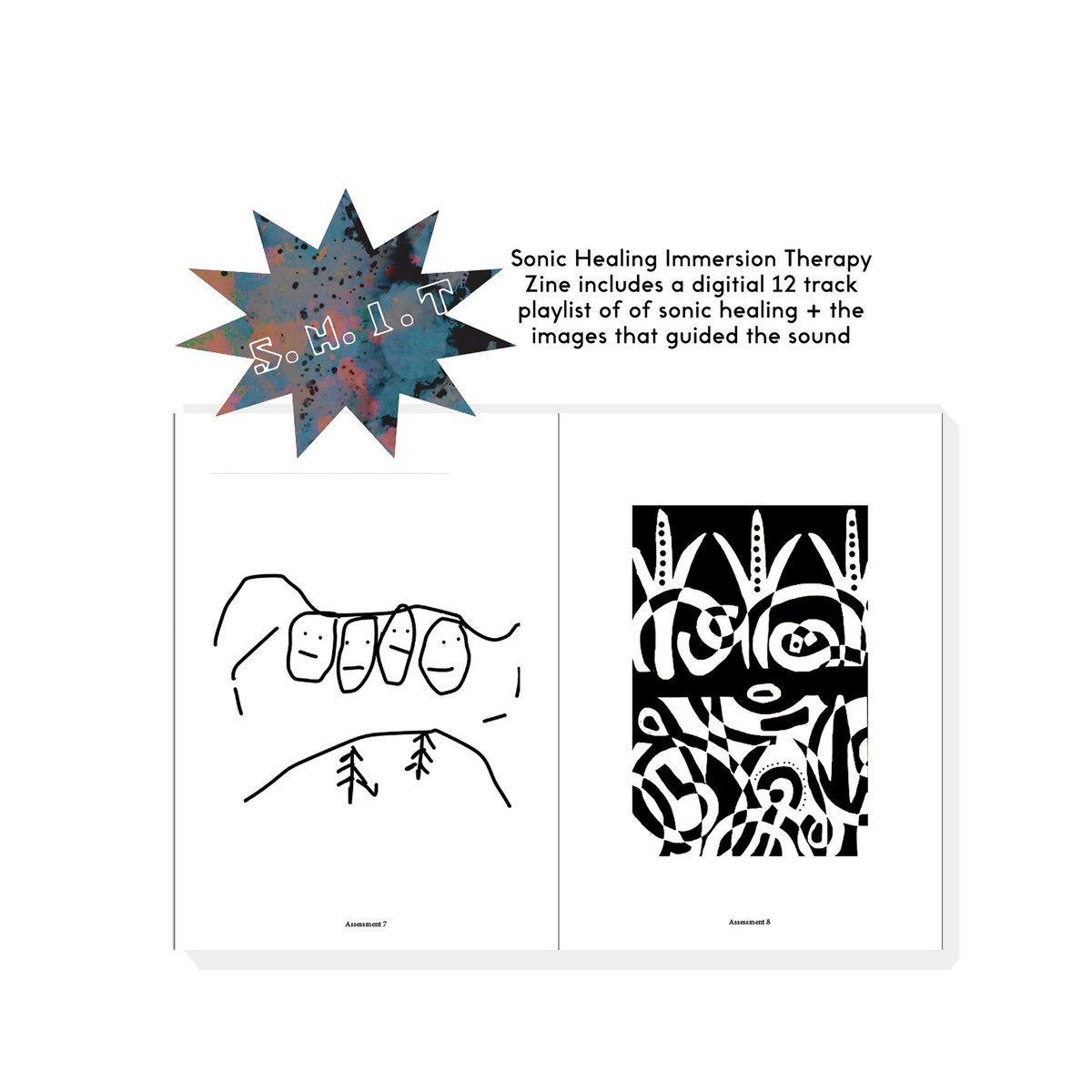 - a "Sonic Healing Immersion Therapy (S.H.I.T.) - Dream Analysis Vol 1" tape / zine combo. The tape features 12 tracks of sonic improvisations undertaken by the S.H.I.T. collective in response to dream drawings. The zine contains the drawings, submitted by kind listeners, of images from their dreams.